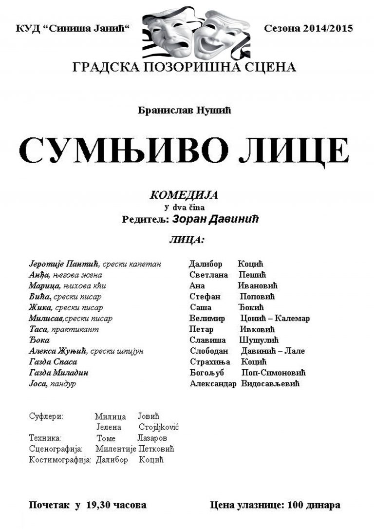 Minđuše od cvetnih grana Predstava „Biberče“ Deda Marzova ekonomska Svadba Ženske priče Hodnik KUD-a Mjuzikl „Mamma Mia!“ Bgoinje vina Ženske priče Boginje vina Plakat Predstave „Gde ćemo teču“ Deda Mrazova ekonmska kriza Predstava „Gde ćemo teču“ Bračna revolucija Predstava „SUmnjivo lice“ Boginje vina Predstava „Mamma mia!“ Predstava „Boing – Boing“ 65 godina sa nama na sceni – Deda Velja Predstava „Nikad se ne zna“ Predstava „Gde čemo teču“ Boing Boing Jedan od plakata predstave Velimir Conić – Kalemar Logo predstave „Mamma Mia! Predstava „Gde ćemo teču“ Boginje vina Oceni nas Rated 5 out of 5